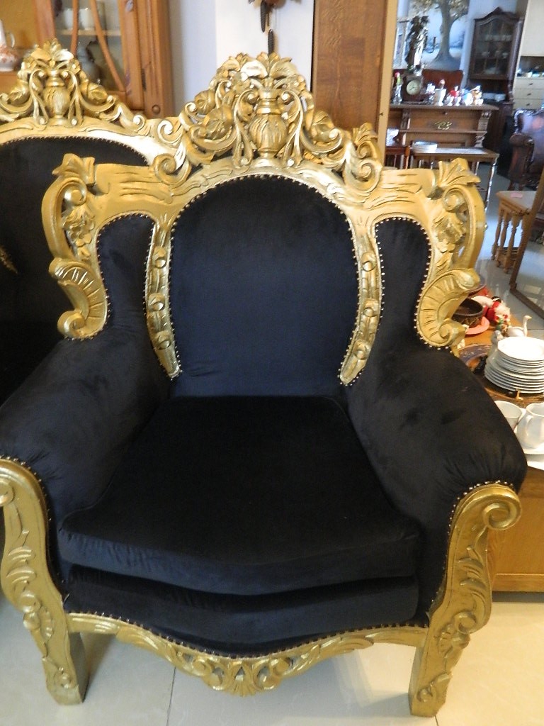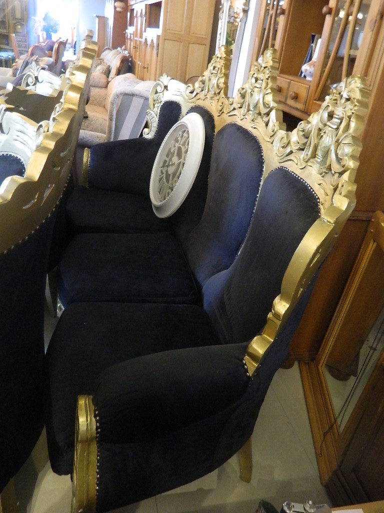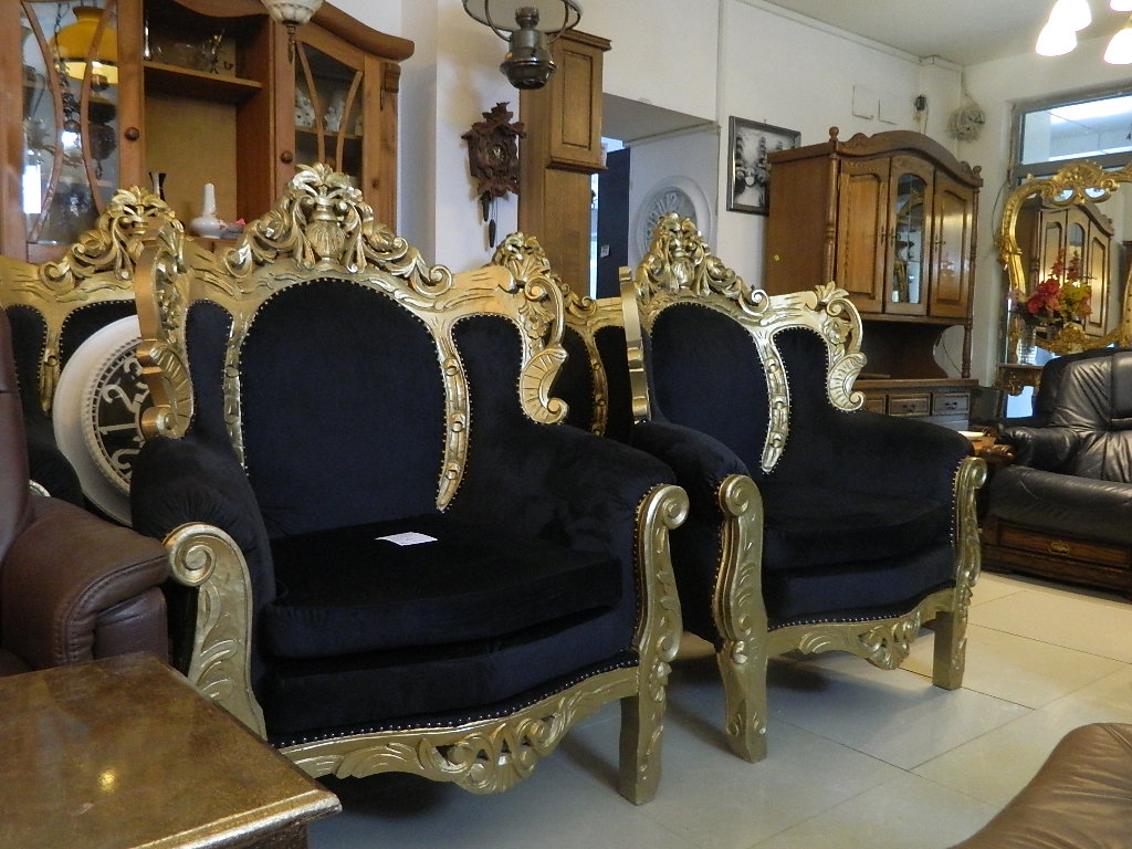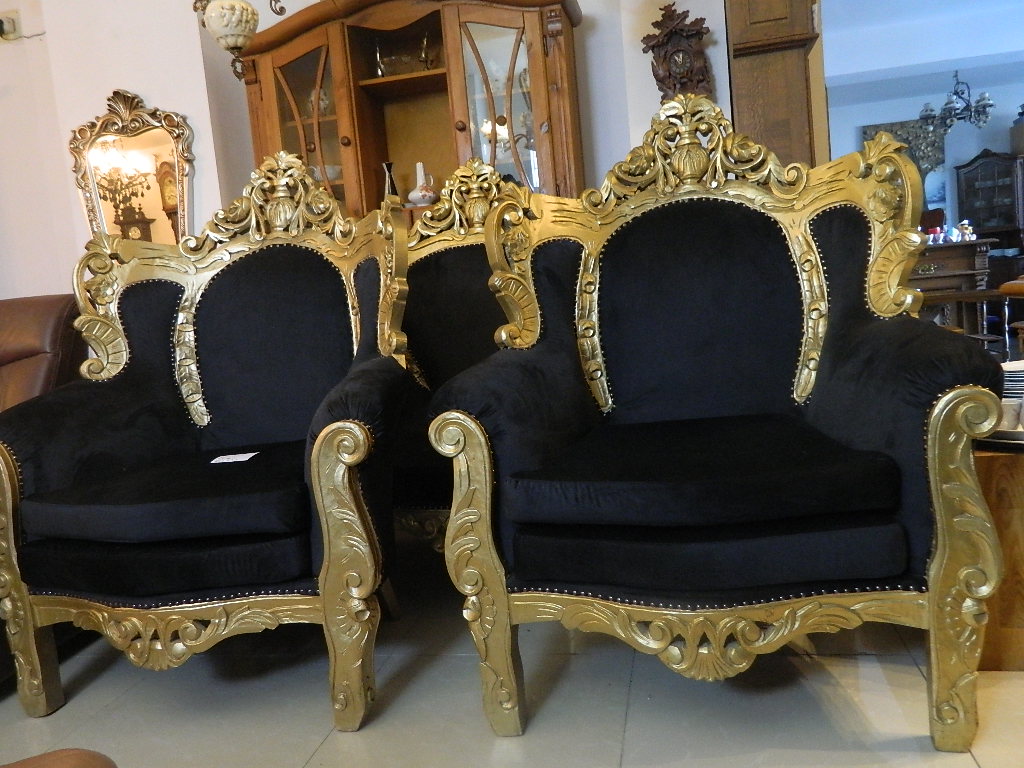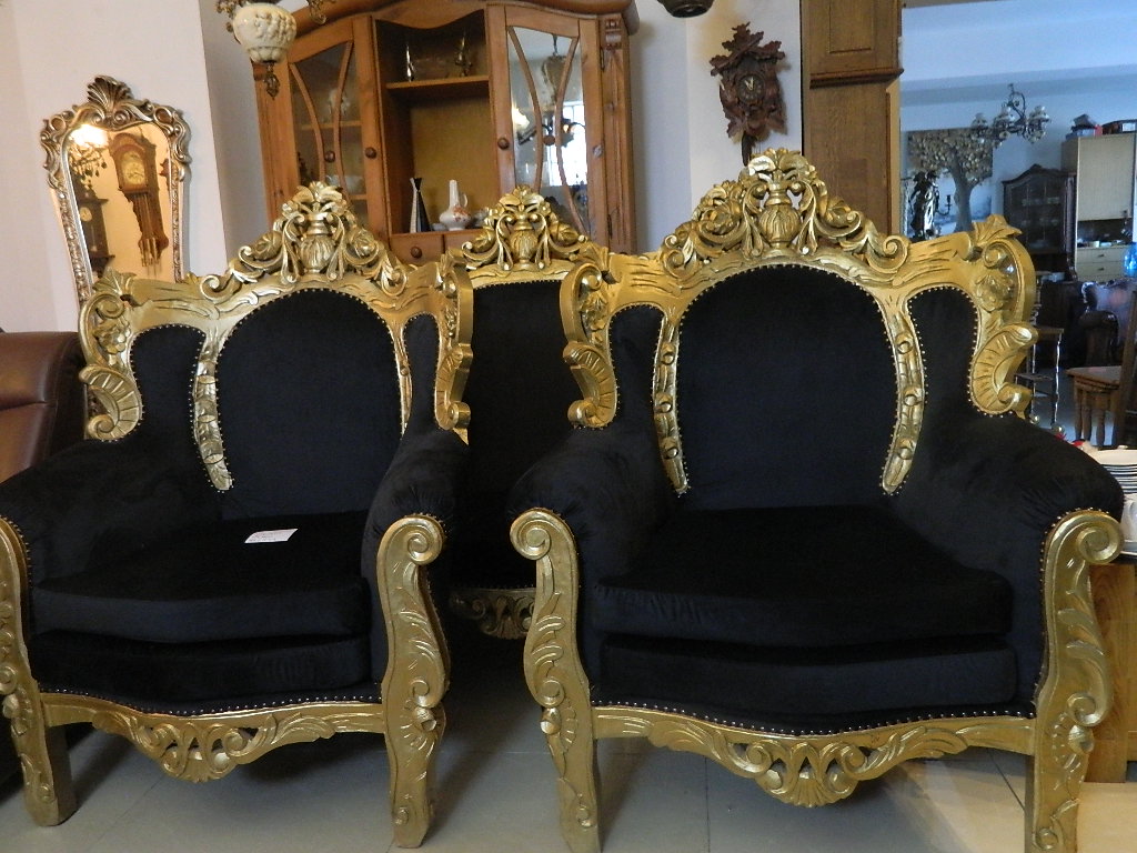 canapele stil din lemn si catifea neagra....canapea 3 locuri si 2 fotolii///