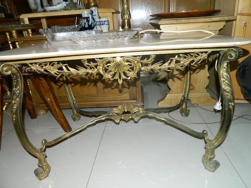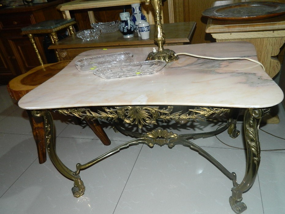 masa de cafea cu marmura roz pal si dantela din bronz.....