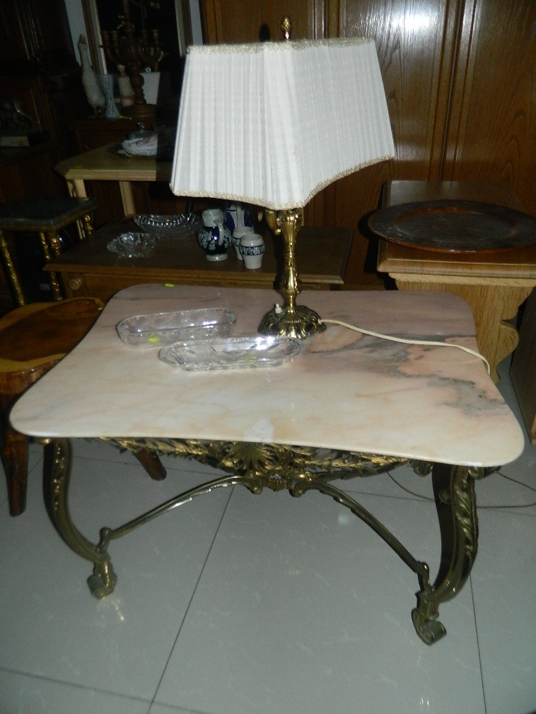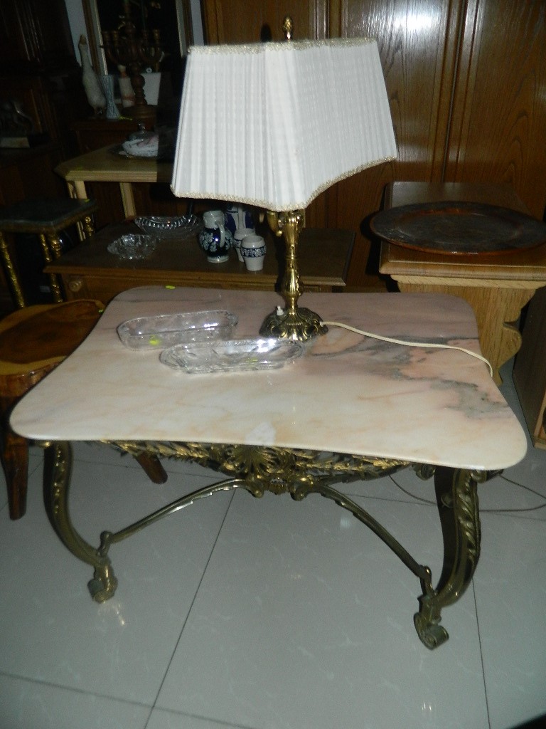 masa cu marmura roz estompat si dantela din bronz,ca postament/////