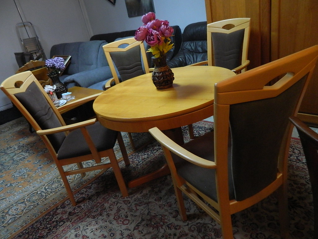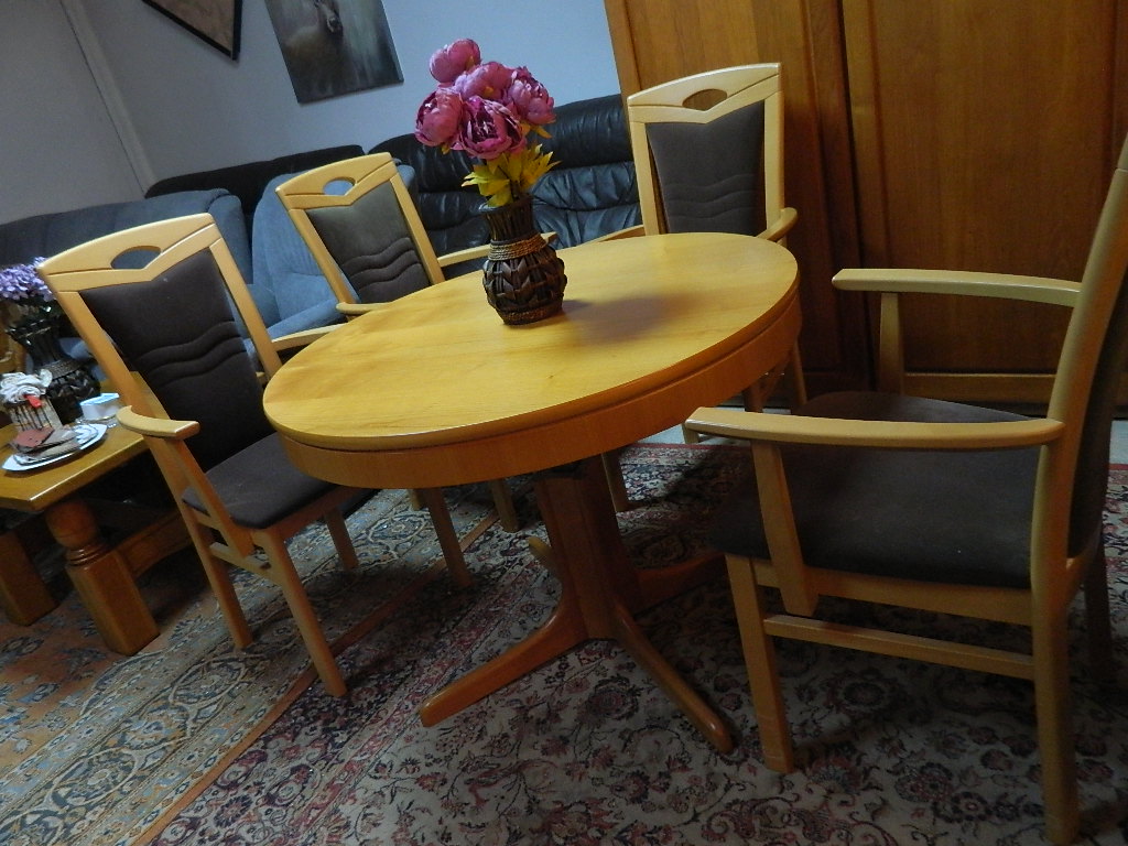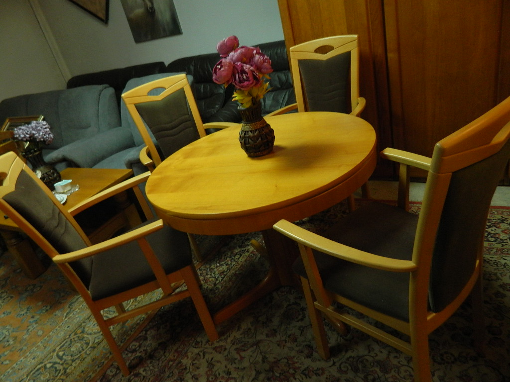 masa lemn extensibila si inaltime reglabila cu 4 scaune jilt,taoitate cu plus bob cafea//////