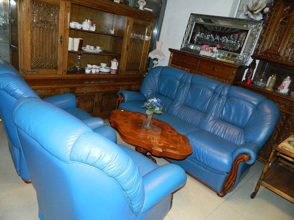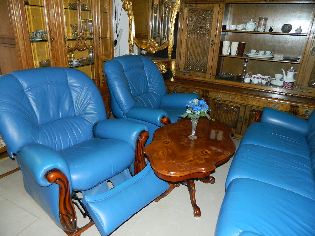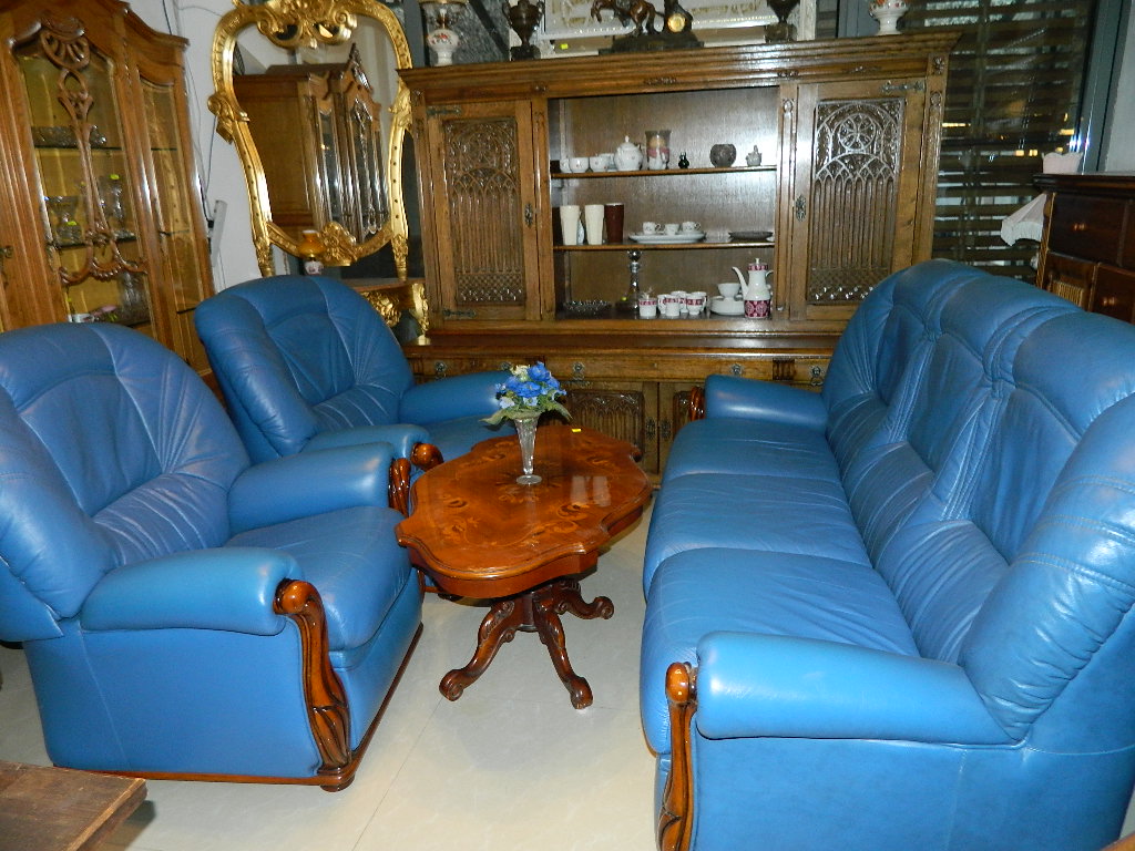 set turcuoaz din piele naturala ,compozitie 3,1,1 din care cele 2 fotolii sunt cu reclainer.,.,