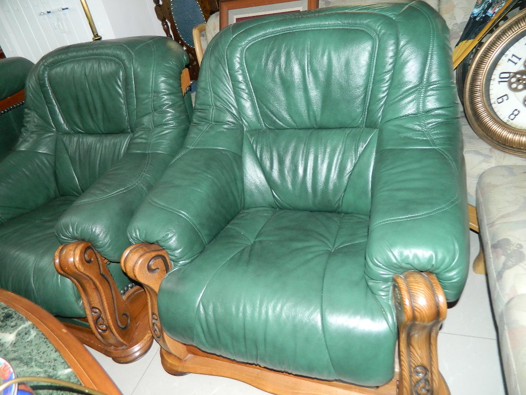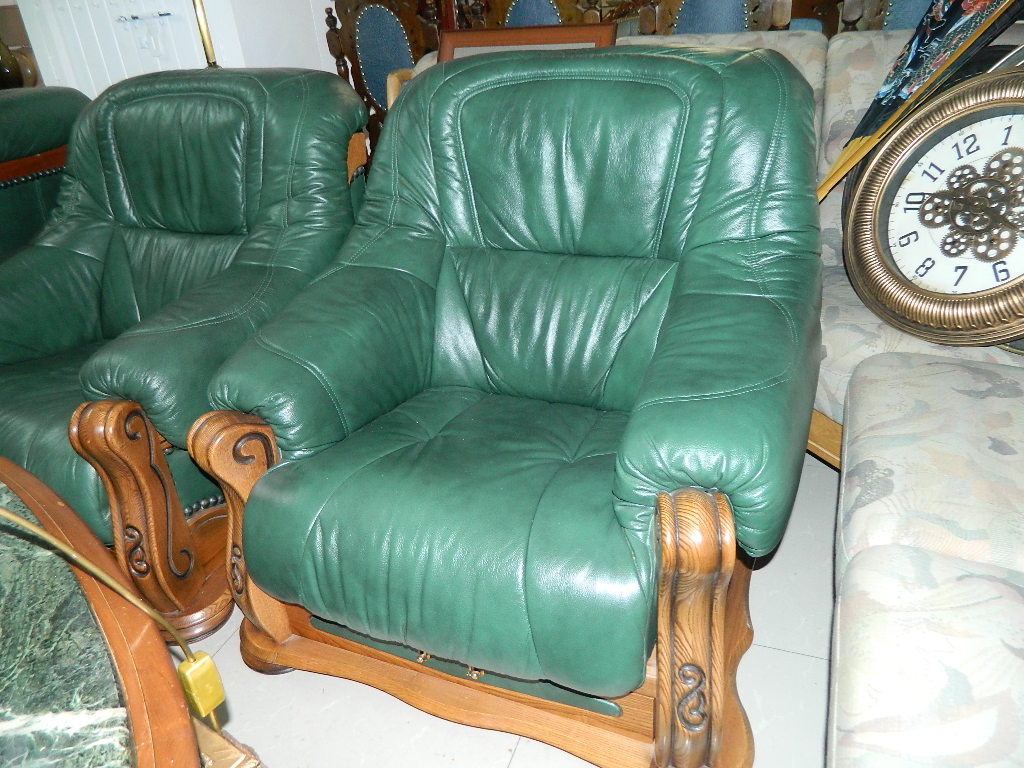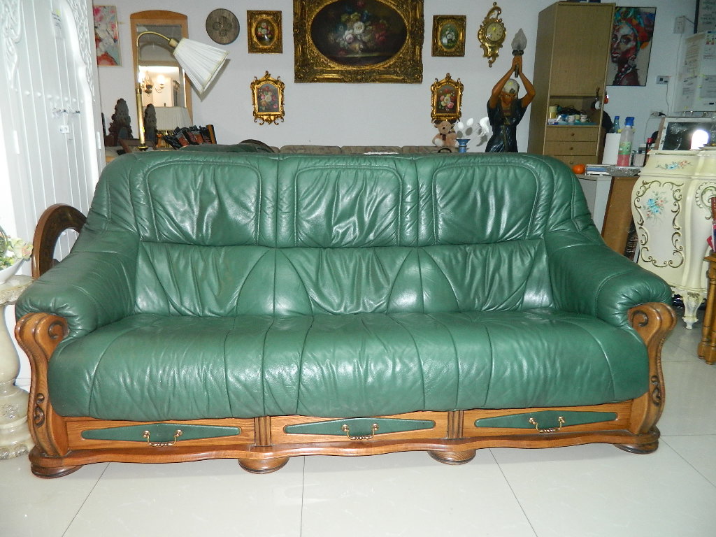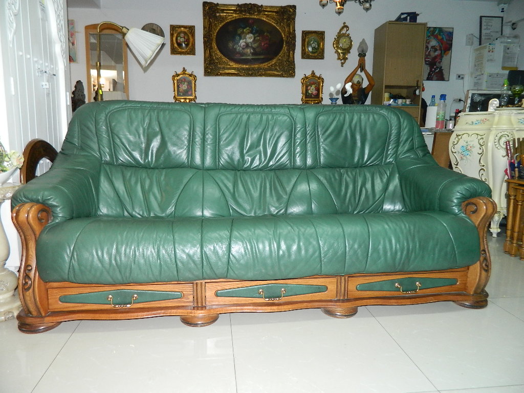 set canapele 3.1.1 verde ,piele naturala integral incadrata in lemn masiv stejar[[[[