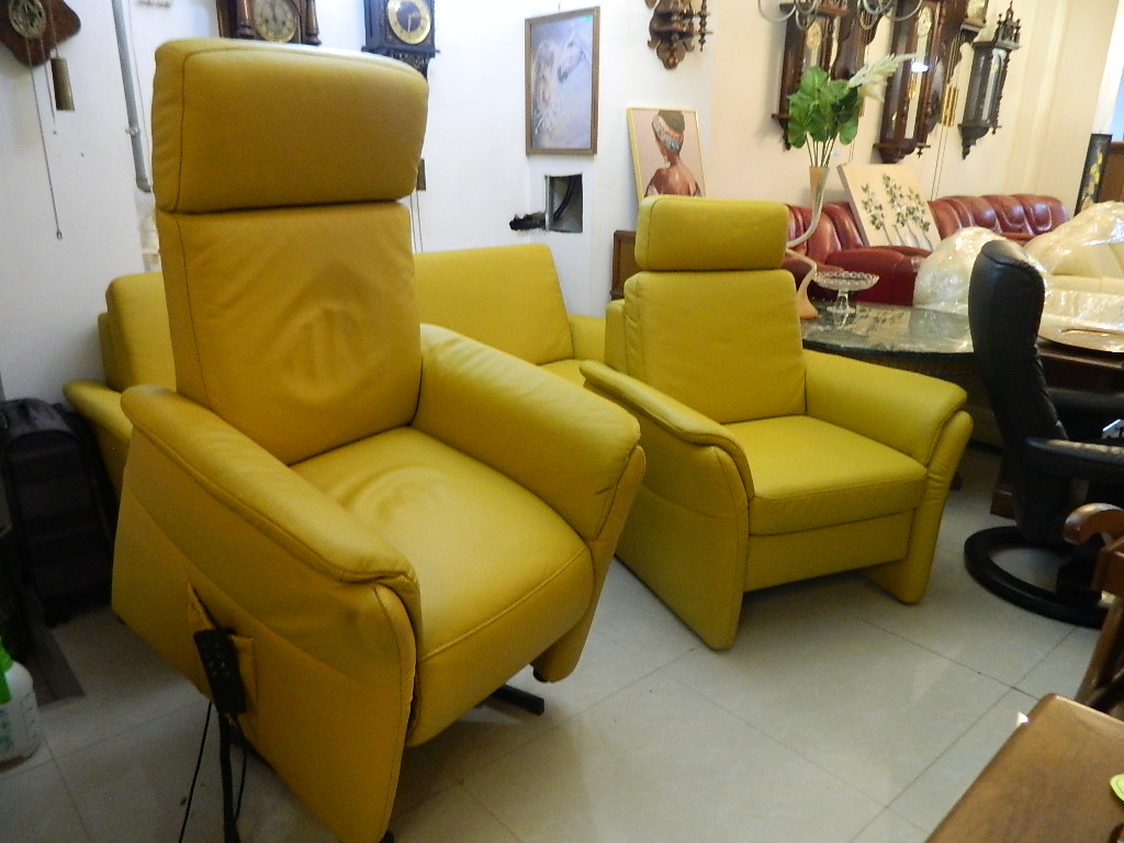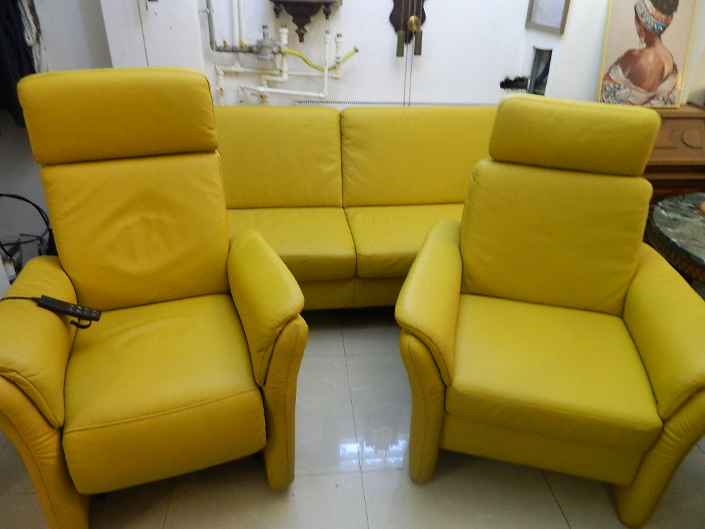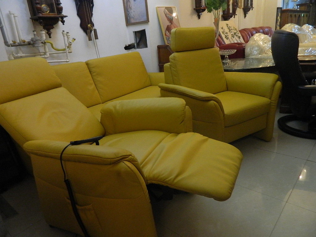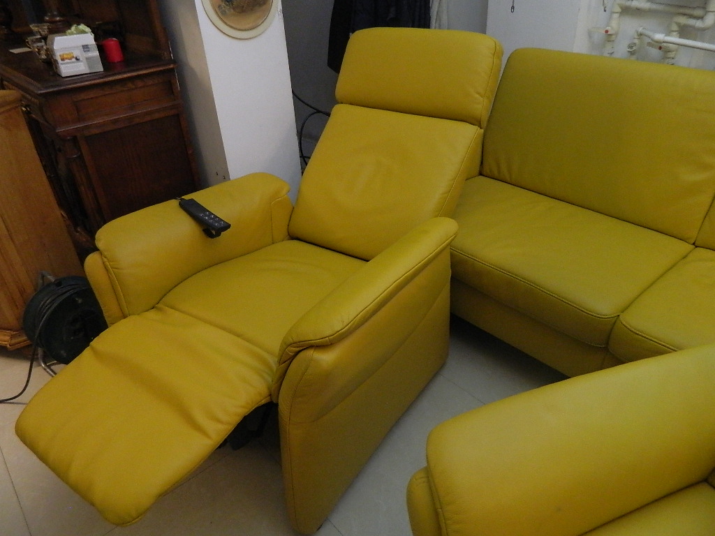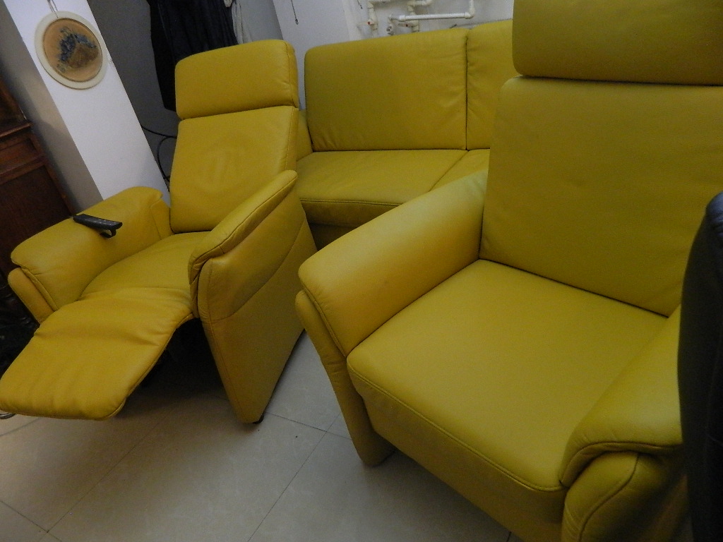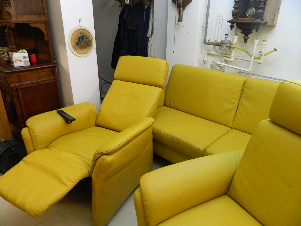 set canapele mustar din piele naturala integral,format din canapea 3 locuri si 1 fotoliu =1 fotoliu electric cu 3 functii...'''