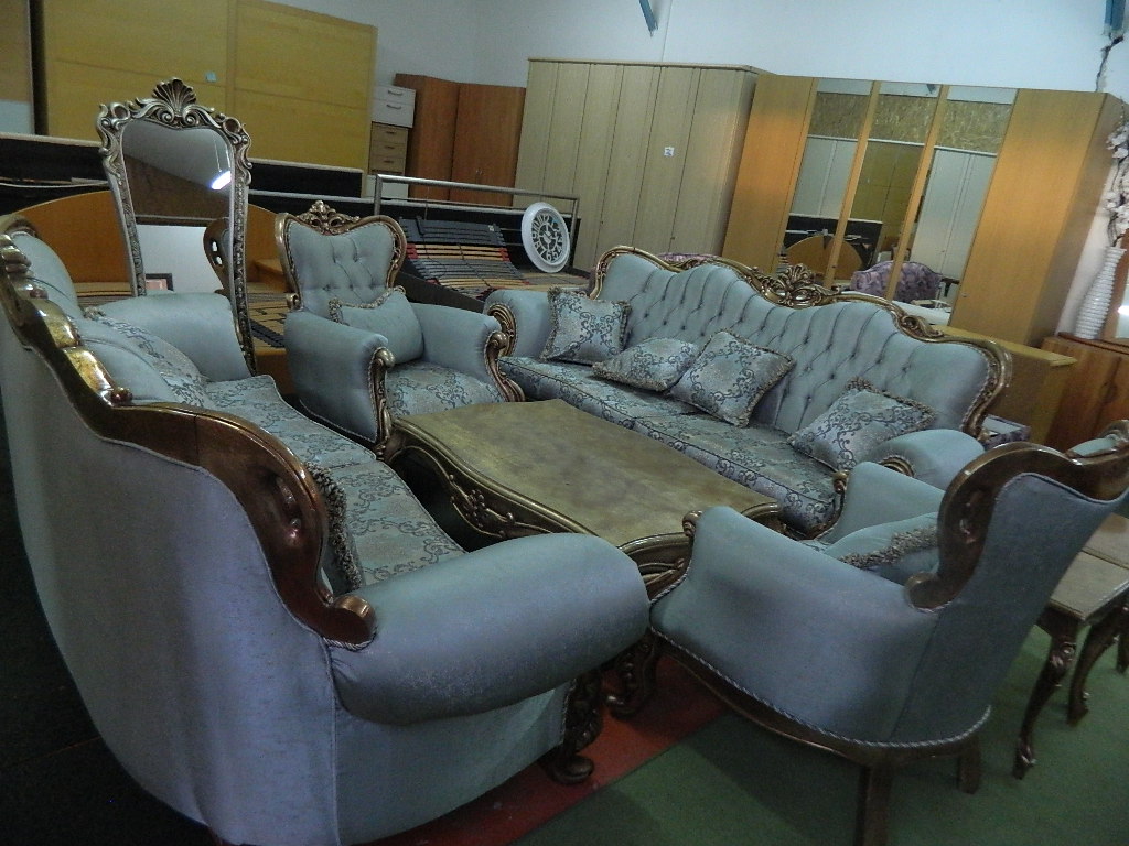 stil canapele din lemn si material textil....
